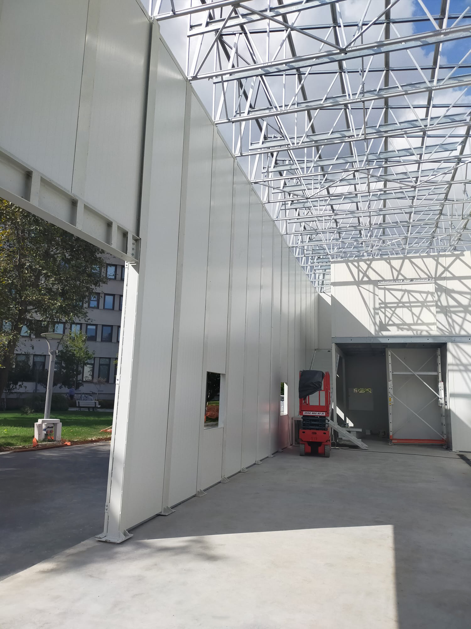 Modern şehircilik anlayışı doğrultusunda tasarlanan yapı; dayanıklılık, fonksiyonellik ve hızlı kurulum avantajlarını bir arada sunmaktadır. Dış ve iç duvarlarda 10 cm kalınlığında Hekim sandviç panel sistem (sac + EPS + sac) kullanılarak yüksek ısı ve ses yalıtımı sağlanmıştır. 3,50 metre kat yüksekliği ile ferah bir kullanım alanı sunan yapı, kullanıcı konforu ön planda tutularak projelendirilmiştir.