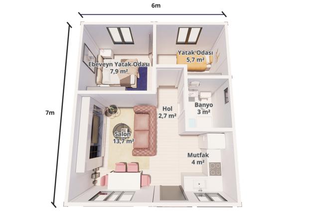 Özenli bir mimari tasarım işçiliğine sahip olan paket ev modelleri, konforlu ve ferah dizaynı sayesinde güvenli bir kullanım alanı oluşturur. Yalnızca 1 günde kurulumu yapılabilen ev modeli; modern, huzurlu ve yeterli bir yaşam alanı sunar. Hızlı bir şekilde kurulabilmesi sebebiyle dilediğiniz her alanda rahatlıkla kullanabileceğiniz ev; iki oda, bir salon, mutfak, hol, banyo ve veranda bölümlerinden oluşur. 48 m² büyüklüğe sahip olan paket ev, konteyner ev çeşitleri arasında yer alan kullanışlı ve konforlu seçeneklerden biridir.
