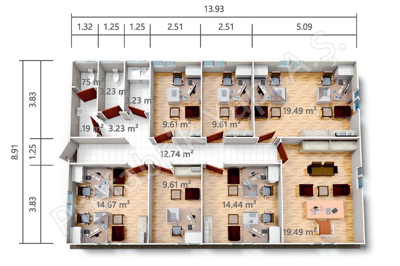 PRO 124 m2 Plan Prefabrik Ofis PRO 124 m2